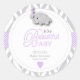 Lavender, White Grey Elephant Baby Shower Classic Round Sticker