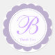 Lavender White Scalloped Circle Monogram Thank You Classic Round Sticker