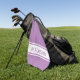 Play golf in style with this personalised golf towel. This design has a solid lavender (light purple) background colour with white stripes and a modern font. This is a terrific gift for women and girl golfers playing in golf tournaments or recreational golf. It's also a lovely gift for golf coaches and instructors. The name and colour can be customised in the personalisation options. Change colours to your favourite combination or match your golf bag or team colours.