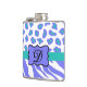 You will love carrying your favourite alcohol liquor beverage in this sophisticated and stylish monogram flask. The art design is a combination of the popular wild african animal zebra stripe and leopard or cheetah skin patterns. This trendy periwinkle lavender purple and white zebra and leopard print pattern is available in several colour combinations. A periwinkle lavender emblem on a turquoise teal blue or aqua stripe creates a personalisation area for your monogram or name. This is fully customisable and is available on many coordinating products in this store.