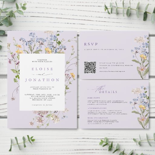 Lavender Wildflower Meadow Garden QR Code Wedding Invitation