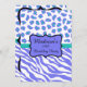 Customise this sophisticated invitation for a 60th birthday party or other event. The design features periwinkle lavender purple and white zebra stripes and leopard or cheetah skins combined for a trendy and modern design. A lavender purple emblem outlined in black on a turquoise teal blue bar and creates a personalisation area, with the birthday girl's name and "60th Birthday Party" words that can be customised to other words. The back of the invitation includes fields for all of your information for your party. You can easily change and delete fields as needed. Colours are periwinkle lavender, white, turquoise teal blue, black, and lime green. Wild animal skins for graphic design is a hot art and design trend, and is extremely popular from fashion to home decor. This sophisticated zebra and leopard print collection is one of several colour combinations available for your choice of invitations and coordinates with other products for a stylish party.
