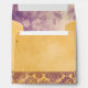 A playful fusion of contemporary sensibility with vintage, old fashioned motifs, convincingly united by a grunge aesthetic. A beautifully intricate floral damask border wraps around the bottom of the envelope, against a softly textured, cream paper background. The inner lining features an amorphous, shifting, watercolor-inspired grunge in tones of lilac and deep purple. This design is sure to make a bold statement.