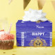 This gift wrap can be for any occasion.  I made it for Birthday.  But that can be changed as I made all the text customisable.  You can say "Happy Retirement" or Change "Happy" To "Get Well" and the vertical text to "Soon."  Or Delete Happy and Put "Congratulations" and then vertically put the names of the couple i.e. "Joe & Sue" or whatever you want.  The design features a royal blue swirl (satin look) background with a gold medallion that is overlaid with a law enforcement icon I created.  This Icon features a badge with two guns on each side.  On top are two police tapes and a policeman's cap.  Below are handcuffs that dangle.