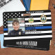 Easily identify yourself and your police officer at the police department with these thin blue line flag custom personalised photo, logo, bar code, police identification card badges. Personalise with police officer photo, name, badge number, details and police department. Customise with your police station logo, state seal and barcode. This thin blue line police id card badge is perfect for all police officers, law enforcement, sergeant, chief, captain and lieutenant. COPYRIGHT © 2020 Judy Burrows, Black Dog Art - All Rights Reserved. Law Enforcement Officer Photo Logo Police ID Badge