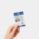 This blue and white photo ID badge features a law enforcement star embedded deep within the design. A barcode is placed at the front bottom in case your business uses scanning for entrance to sensitive areas. Tighten security with these employee identification badges in a crisp blue and white design that allows room for your logo both front and back. Also on the back is your address and phone number in case a badge is lost. Areas that may not apply to your individual organisation are easily deleted.