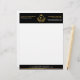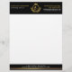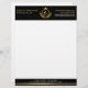 Elegant professional Law Firm Letterhead featuring law logo in gold on a black background. Personalise with your details in trendy block lettering. Click customise further to edit this template. All text can be customised.