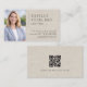 Linen-style business card for law firms with photo and QR code. Designed so clients can quickly save your contact details or access your website or consultation link. Ideal for client meetings, legal consultations, and referrals. Editable text and QR destination. Clean print-ready layout.