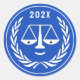 Creative lawyer gift stickers, envelope seals or graduation party favour labels featuring funny scales of justice personified on blue background. To customise edit text.