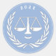 Law school graduate gift stickers or party favour labels, featuring creative Scales of Justice personified. Edit text to change year of graduation or otherwise customise.