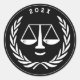 Law school graduate gift stickers or party favour labels featuring creative Scales of Justice personified. Edit text to change year of graduation or otherwise customise.