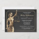 Law School Graduation Party Invitation. Lady Justice w/ faux gold foil. Elegant, classy with chalkboard background.