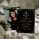 Celebrate your journey to justice with our elegant law graduation party invitations. Embodying class and refinement, these pieces boast a stylish black backdrop that can be adjusted to any hue, shimmering gold glitter, and the iconic scales of justice. With a modern, easily customisable text template and an option to feature the graduate's photo on the reverse side, these invitations are more than just a call to a party - they're a testament to your hard-earned achievement.