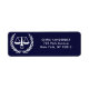 Creative law school graduation announcements, party invitations and grad thank-you notes return address labels featuring funny scales-of-justice design.
