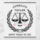 Creative law school graduation party labels and lawyer grad gift idea featuring funny quote and scales of justice cartoon. To personalise edit text to add name and year or otherwise customise.