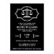 An elegant law school graduation party invitation. Featuring the iconic scales of justice, a timeless symbol of law. A sophisticated and stylish design in a black and white colour palette. Perfect for any law graduate. The text templates are easy to customise. Available as printed cards or as an instant download to send on your phone.