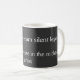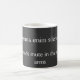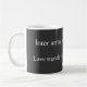 A white and dark gray mug with a latin quote and the english translation underneath. "Law stands mute in the midst of arms" is a quote by the Roman lawyer Cicero. It basically means that when a war is on, legal matters and the legality of certain actions take a back seat.