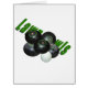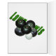 Featured are black Lawn Bowls with a green Lawn bowls logo inverted into the top.