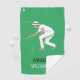 The golf towel exceeded my expectations! My husband actually approved of it! He liked the picture quality, thickness and overall usefulness of the golf towel I ordered to commemorate his lowest ever golf score. He liked it so well that I ordered 8 more towels with photos of his home golf course. Each one of the eight has the name of one of his golf group members. I will give them as party favors at my husband's 70th birthday party later this year. The different names were easy to add because the Zazzle template is so very easy to use. The colors were bright and authentic in all 9 of the towels that I made. The one of the 9 that I ordered has come out of the wash and line dry looking great.