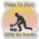 Pictured in a vintage style is a lawn bowler with bowls and the words time to play with my bowls.