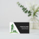 Simple lawn care business card with silhouette of person using lawnmower. Perfect for your lawn care or lawn maintenance business or landscaping business. Front has name, business name and type of service, while the back includes name, tagline, phone number, areas served (or short message with services), email, website, and address. Fully editable to suit your needs. A simple yet impactful card.