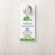 Lawn service door hanger with blue and green design.