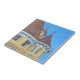 This close-up architectural oil pastel of Lawson Tower in Scituate, Massachusetts provides a sunny, detailed view of the well-known local landmark. The artwork highlights the distinctive turrets and architectural detail accentuated by the late afternoon sunlight. The tower’s light wood shingled facade reflect the late summer sun.