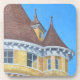 This close-up architectural oil pastel of Lawson Tower in Scituate, Massachusetts provides a sunny, detailed view of the well-known local landmark. The artwork highlights the distinctive turrets and architectural detail accentuated by the late afternoon sunlight. The tower’s light wood shingled facade reflect the late summer sun.