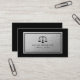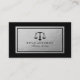Very elegant Lawyer Attorney Business Card with Faux Silver Foil frame and black justice scale symbol with black background.