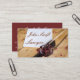Photo of the inkstand, quill and a white sheet of paper on a wooden table. Name and trade on the front, funny text on the back. Fully customisable business card. You can change or delete everything, just be creative. And have fun with this unique, one-of-a-kind business card template.