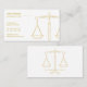 Lawyer business cards in a stylish, elegant template design with scales of justice logo symbol.