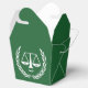 Creative lawyer birthday or law school graduation party favour gifts featuring funny scales of justice on green background.