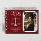 Celebrate the new juris doctorate graduate from law school with this silver lawyer scales graduation announcement! Elegant with a vintage photo border and gold confetti accents! Perfect for anyone graduating law school!