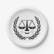 Creative lawyer party plates featuring funny scales of justice cartoon for law school graduation or other lawyer celebration.