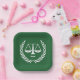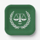 Creative law school graduation, lawyer birthday, or law firm party plates design featuring funny Scales of Justice personified.