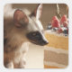 A small, elegant sticker featuring a curious brown hyena pup eyeing a towering multi-layer cake with berries. Perfect for laptops, notebooks, or planners with a touch of whimsical charm.