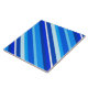 Layered, 3-d look, diagonal stripes in multiple shades of blue, from pale sky blue to deep cobalt, accented with white