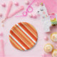 Layered, 3-d look, diagonal stripes in multiple shades of orange, from pale sherbet orange to deep mandarin, accented with white