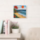 Layered paper art beach with a tree square wall clock