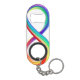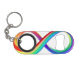 Bright symbol of infinity from plastic layers of red, yellow, green, turquoise, blue and purple saturated colours on white background.