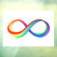 Bright symbol of infinity from plastic layers of red, yellow, green, turquoise, blue and purple saturated colours on white background.