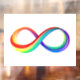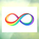 Bright symbol of infinity from plastic layers of red, yellow, green, turquoise, blue and purple saturated colours on white background.