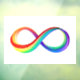 Bright symbol of infinity from plastic layers of red, yellow, green, turquoise, blue and purple saturated colours on white background.