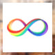 Bright symbol of infinity from plastic layers of red, yellow, green, turquoise, blue and purple saturated colours on white background.