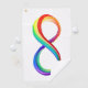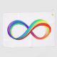 Bright symbol of infinity from plastic layers of red, yellow, green, turquoise, blue and purple saturated colours on white background.