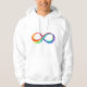 Bright symbol of infinity from plastic layers of red, yellow, green, turquoise, blue and purple saturated colours on white background.