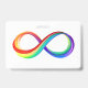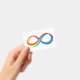 Bright symbol of infinity from plastic layers of red, yellow, green, turquoise, blue and purple saturated colours on white background.