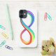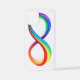 Bright symbol of infinity from plastic layers of red, yellow, green, turquoise, blue and purple saturated colours on white background.