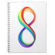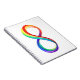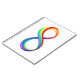 Bright symbol of infinity from plastic layers of red, yellow, green, turquoise, blue and purple saturated colours on white background.