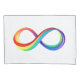 Bright symbol of infinity from plastic layers of red, yellow, green, turquoise, blue and purple saturated colours on white background.